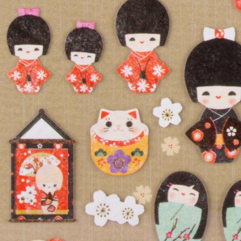 APLI Stickers Kokeshi dolls 1 sheet